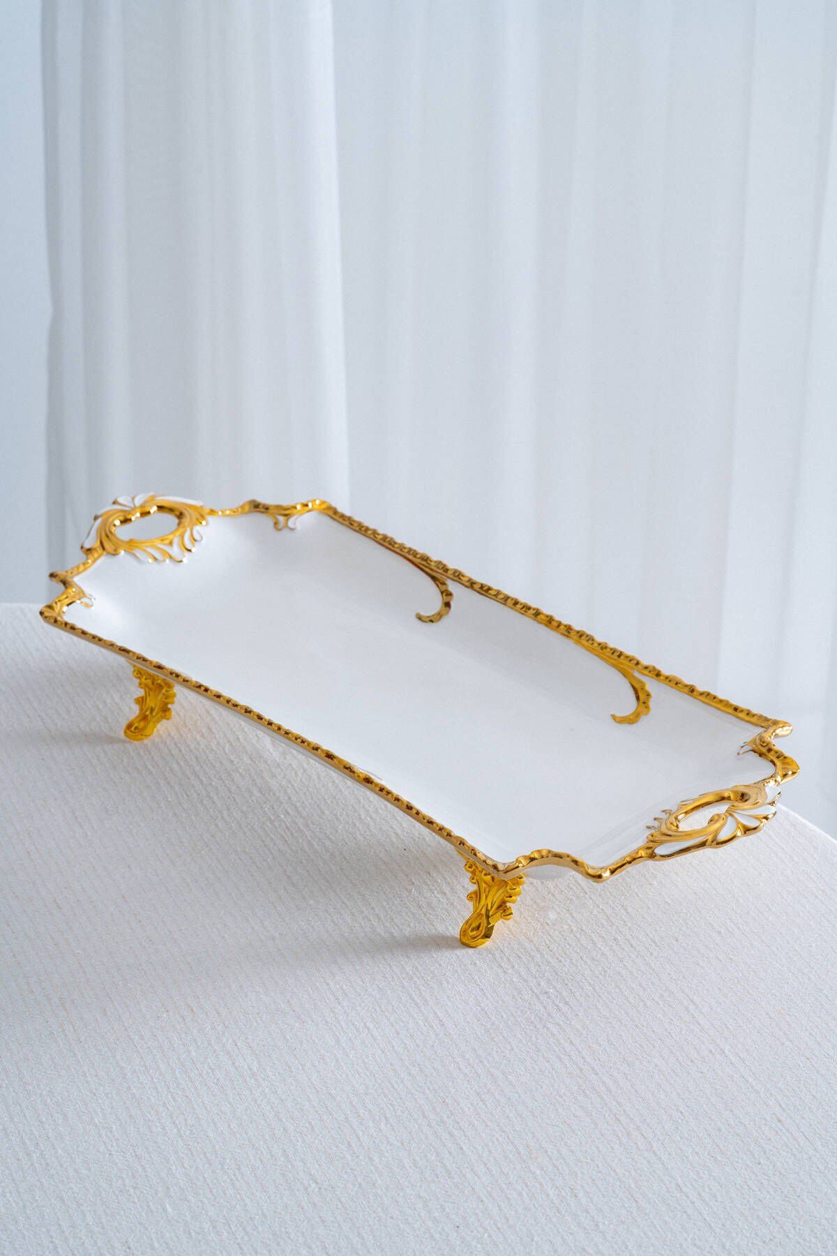 Edwina Ayaklı Dikdörtgen Porselen Sunumluk - 39 cm